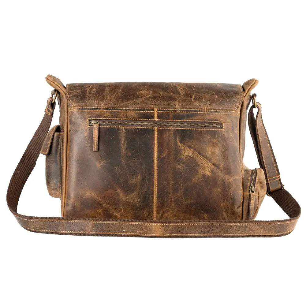 Tired of flimsy bags that can't keep up with your adventures? This rustic brown leather messenger bag is your new best friend—crafted from genuine leather that gets better looking with every scratch and scuff. Sling it across your chest for hands-free carrying, slip your laptop inside the spacious main compartment, and enjoy organized pockets for all your essentials. Whether you're heading to the office, catching a flight, or exploring the city, this bag's got your back (literally). Built to last and designed to impress, it's the kind of bag that tells a story—starting with yours.